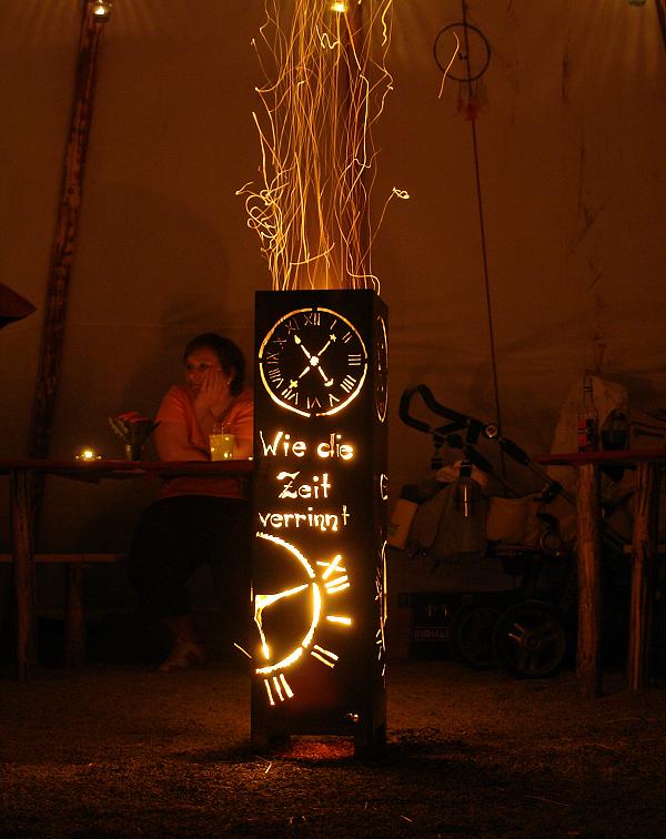 Feuersäule Zeit mit Spruch " Wie die Zeit verrinnt " Der Spruch ist nur auf einer Seite eingeschnitten ! ngel