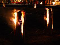 Finnfeuer, Schwedenfackel aus Holz + Stahl